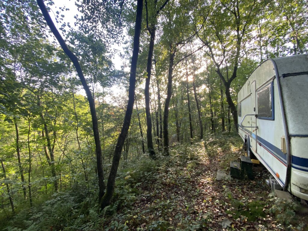 Für unsere mithelfenden Gäste haben wir vorrangig den beliebten Wohnwagen am Waldrand mit Holzofen zur Verfügung. Für das ein oder andere Zelt findet sich in den warmen Monaten auf dem Gelände natürlich auch Platz. Anreise mit dem eigenen Wohnmobil wäre möglich (holprige Anfahrt beachten!), es darf nur nicht zu lang sein und (ebene) Autostellplätze sind leider auch stark begrenzt.